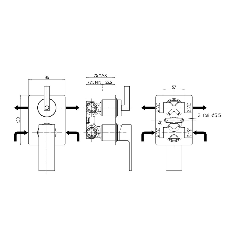 Εντοιχιζόμενη μπαταρία ντους Paini DaxR-DaxRS