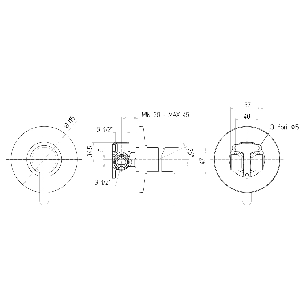 Εντοιχιζόμενη αναμεικτική μπαταρία ντους 1 εξόδου Paini Arena 14710 Χρωμέ