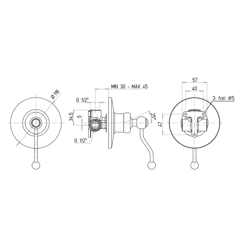 Εντοιχιζόμενη μπαταρία ντους Paini Cox-Grip