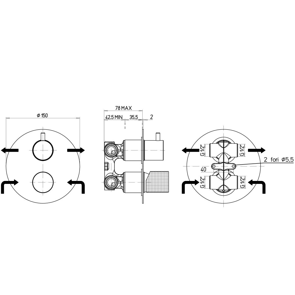 Εντοιχιζόμενη μπαταρία ντους Paini Cox-Grip
