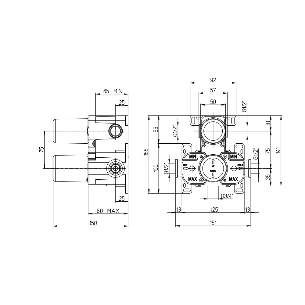 Θερμοστατικός αναμείκτης εντιχοισμένος, 2 εξόδων με εναλλάκτη
