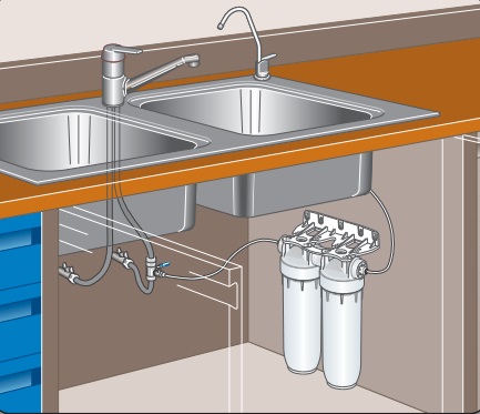 Φίλτρο νερού DP μονό, κάτω πάγκου με βρυσάκι.