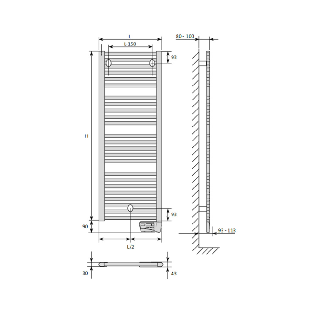 Το Flores E παρέχεται με ένα ηλεκτρονικό θερμοστάτη που επιπρόσθετα ενσωματώνει ένα χρονοδιακόπτη που σας επιτρέπει να θέσετε την πετσετοκρεμάστρα σε ισχύ για διάστημα δύο ωρών κάθε μέρα.