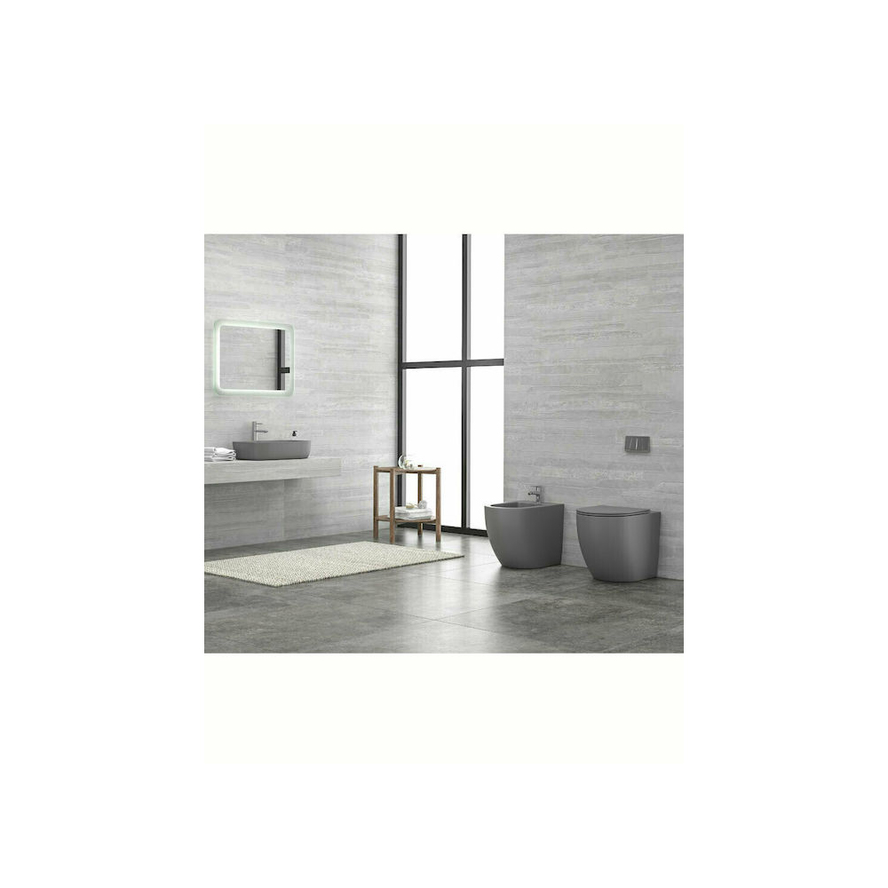 Λεκάνη δαπέδου Karag Milos LT-2141D-RMDG Rimless με Slim κάλυμμα soft close Γκρι