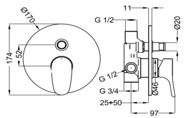 Μπαταρία λουτρού εντοιχισμού Teorema Tag