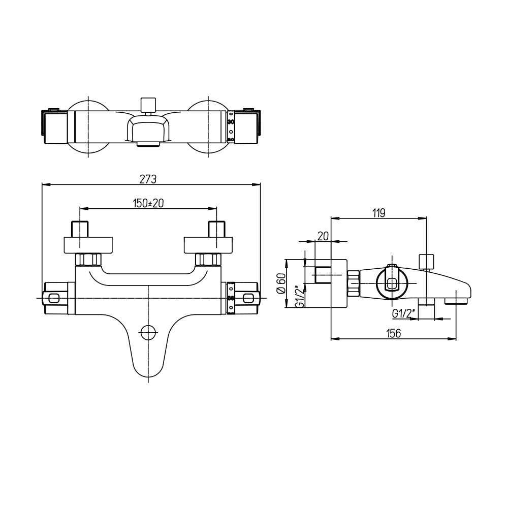 Μπαταρία λουτρού θερμοστατική Paini Arena 14715 Χρωμέ