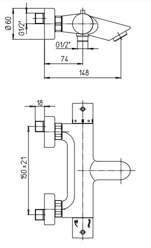 Θερμοστατική μπαταρία λουτρού, μόνο σώμα.