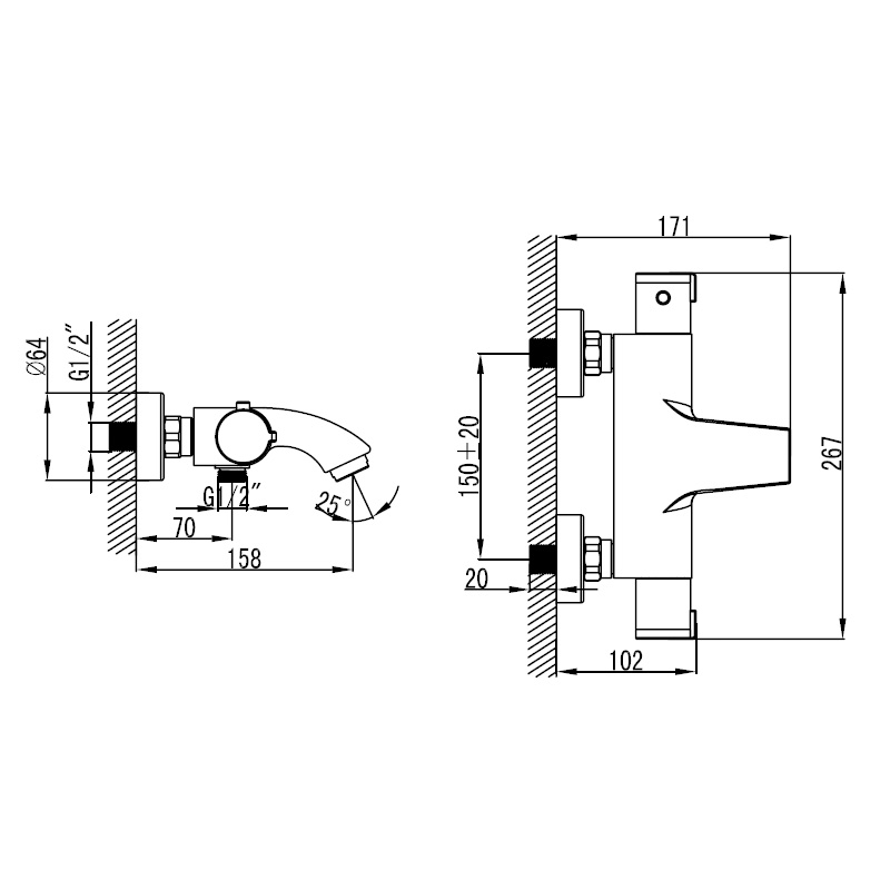 Μπαταρία λουτρού θερμοστατική Praxis 67033