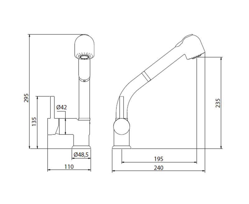 Αναμεικτική μπαταρία νεροχύτη με αποσπώμενο ντους.