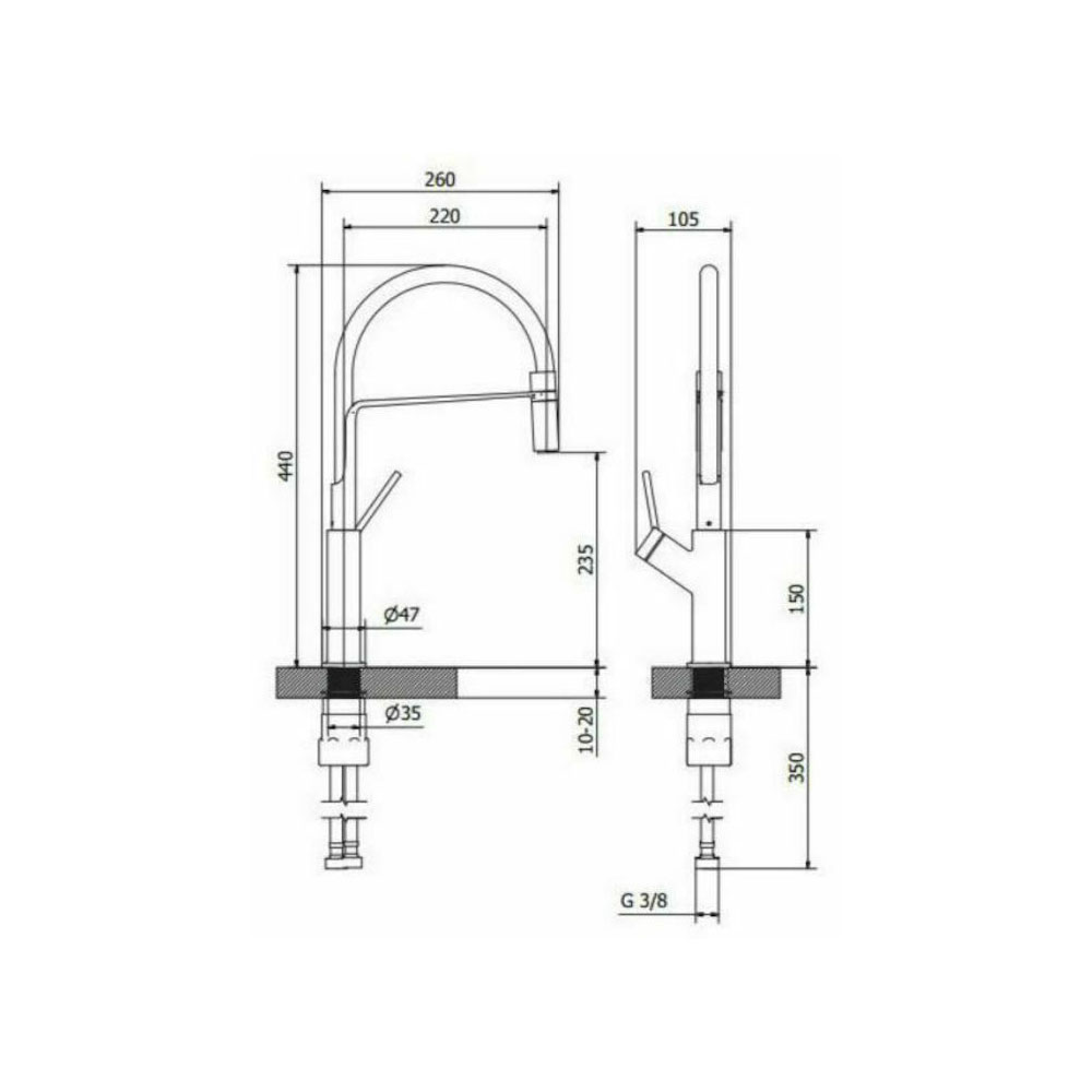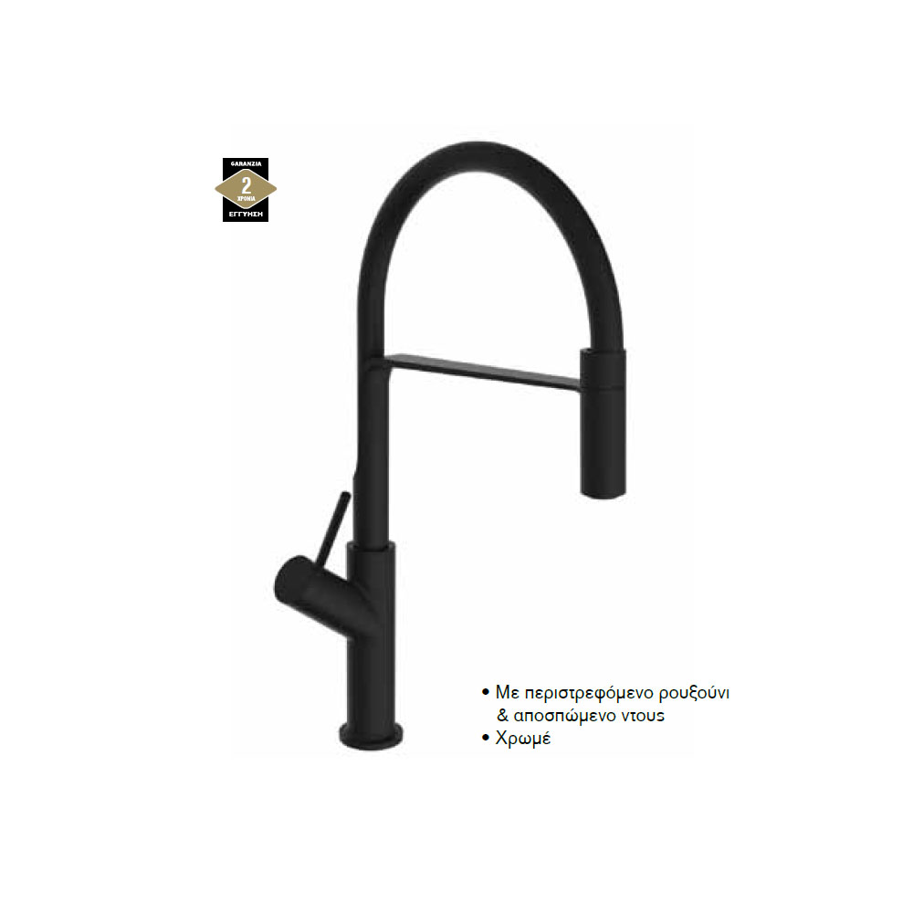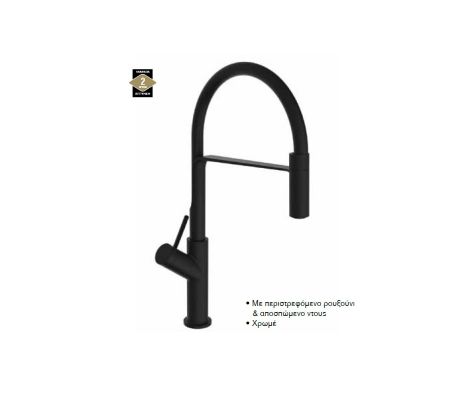 Αναμεικτική μπαταρία νεροχύτη υψηλή με περιστρεφόμενο ρουξούνι & αποσπώμενο ντους.