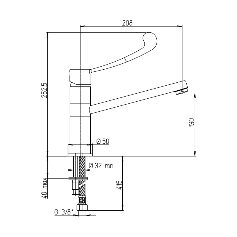 Μπαταρία νεροχύτη πάγκου ΑΜΕΑ Paini Smart Μedica-Energy Saving 14733 Χρωμέ