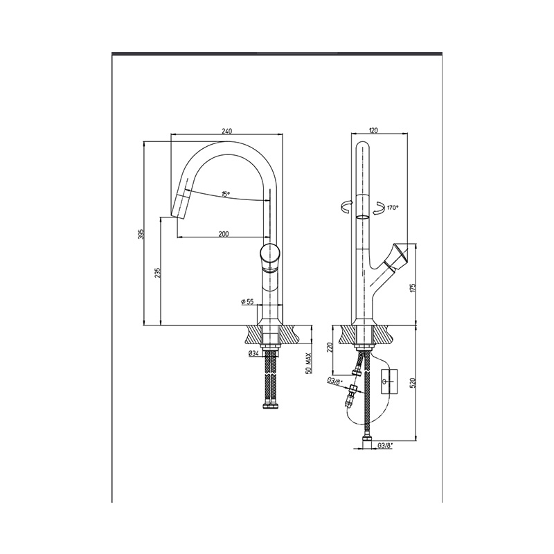 Μπαταρία νεροχύτη πάγκου με ντους Paini Cucina 20854 Χρωμέ