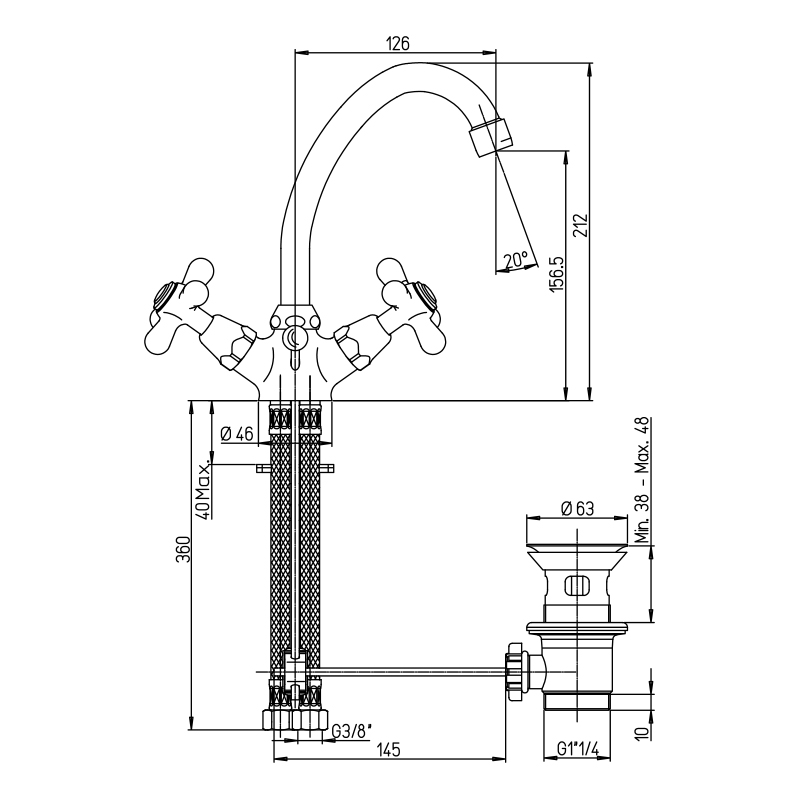 Μπαταρία νιπτήρα Paini Liberty Ρετρό Ψηλή 14386 Χρωμέ