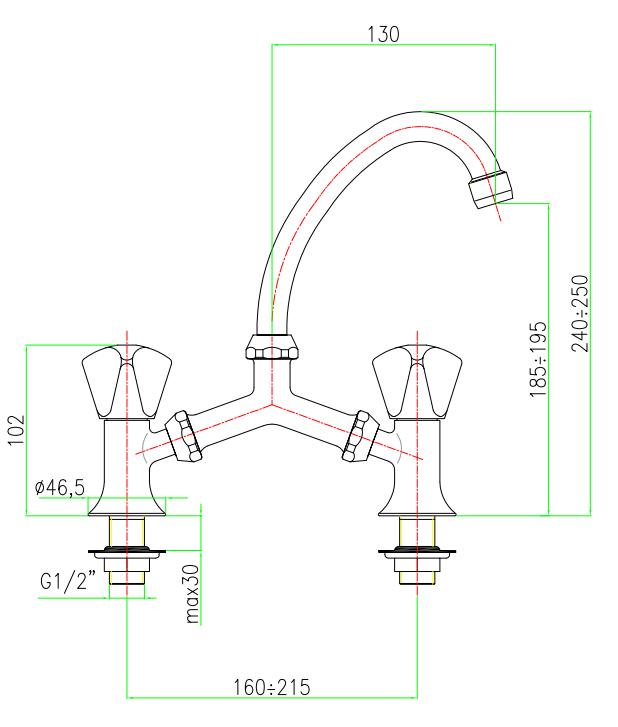 Μπαταρία νιπτήρα γέφυρα ορειχάλκινη.