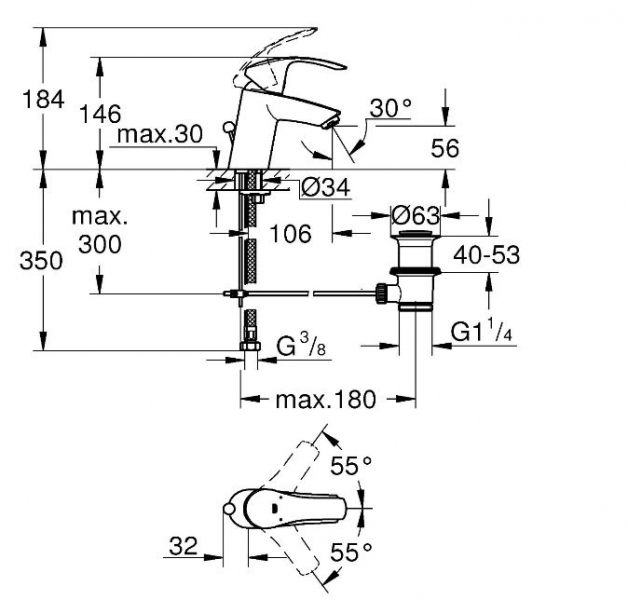 Μπαταρία νιπτήρος Grohe Eurosmart New