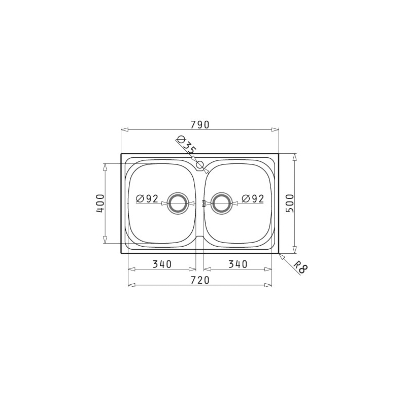 Aνοξείδωτος νεροχύτης με δύο γούρνες.