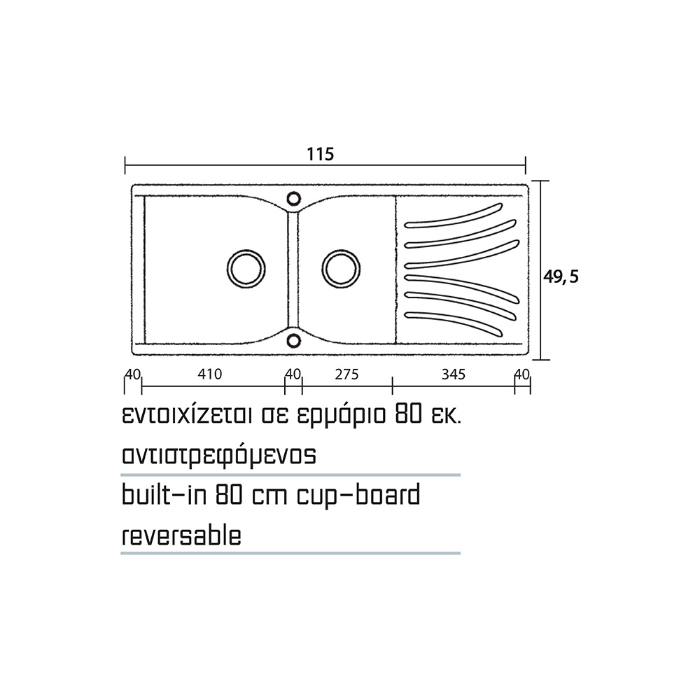 - Εντοιχίζεται σε ερμάριο 80εκ.