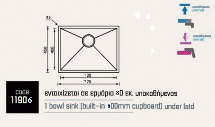 - Εντοιχίζεται σε ερμάριο 80εκ. επικαθήμενος