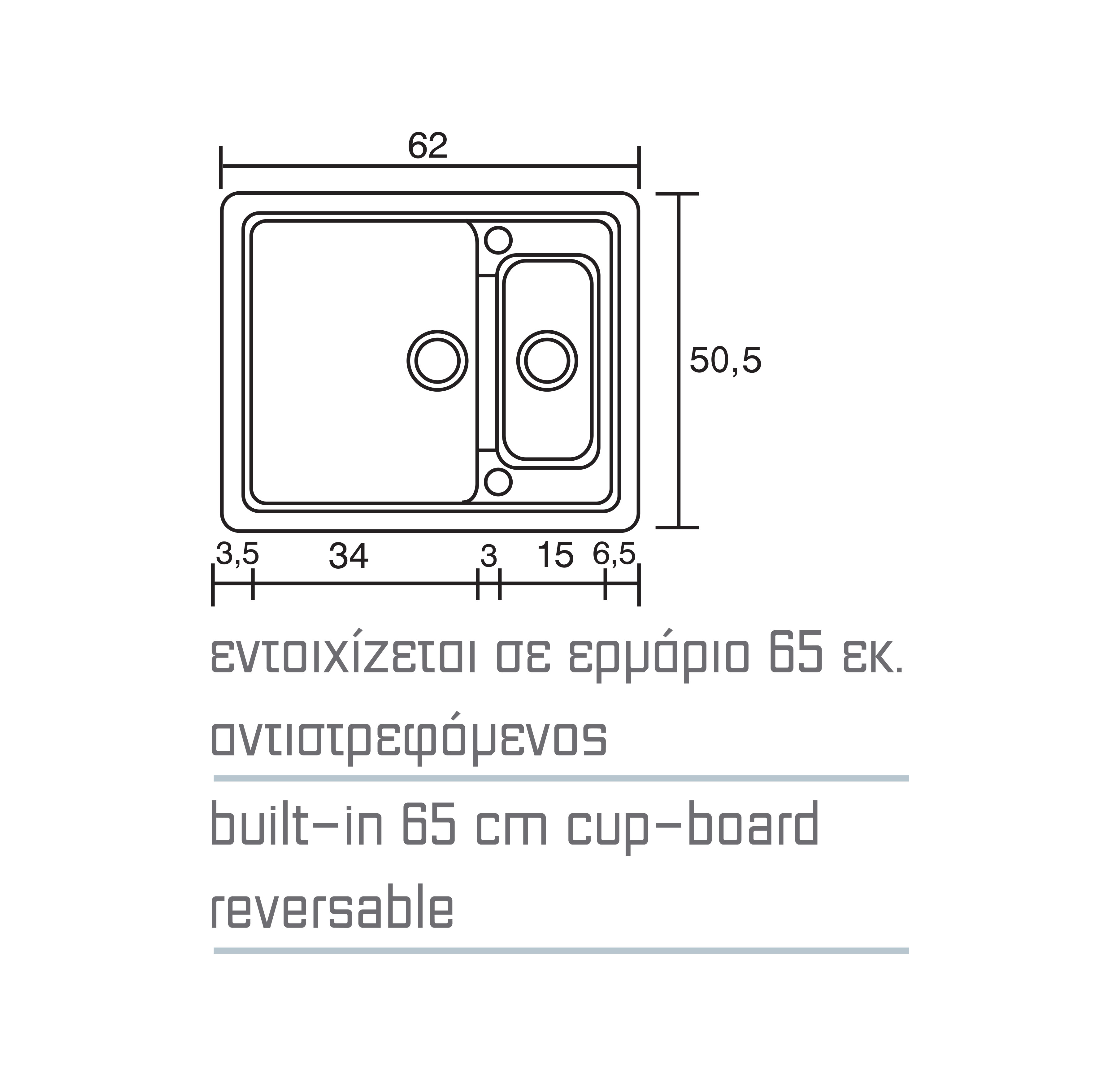 - Εντοιχίζεται σε ερμάριο 65εκ.