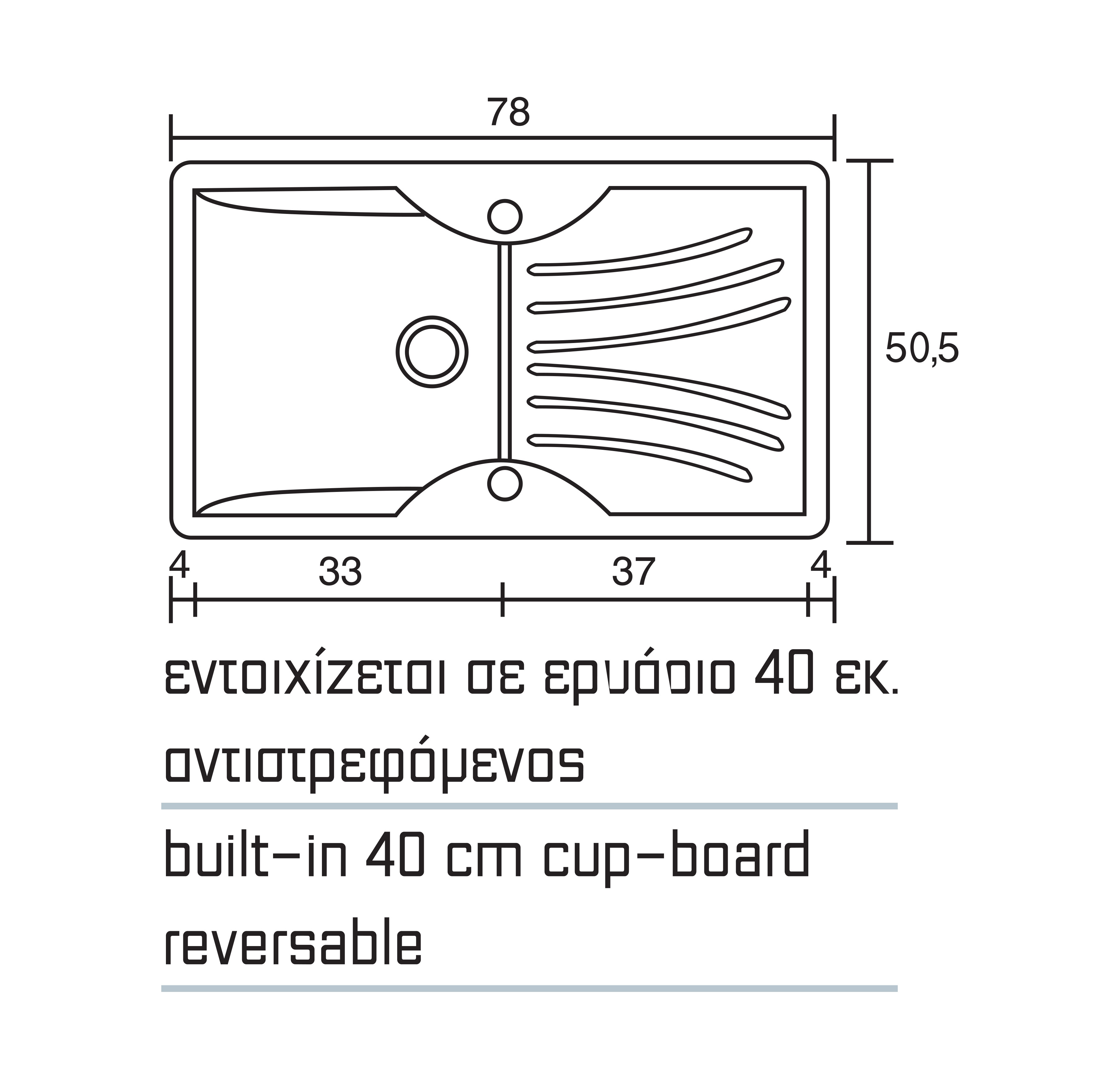 - Εντοιχίζεται σε ερμάριο 40εκ.