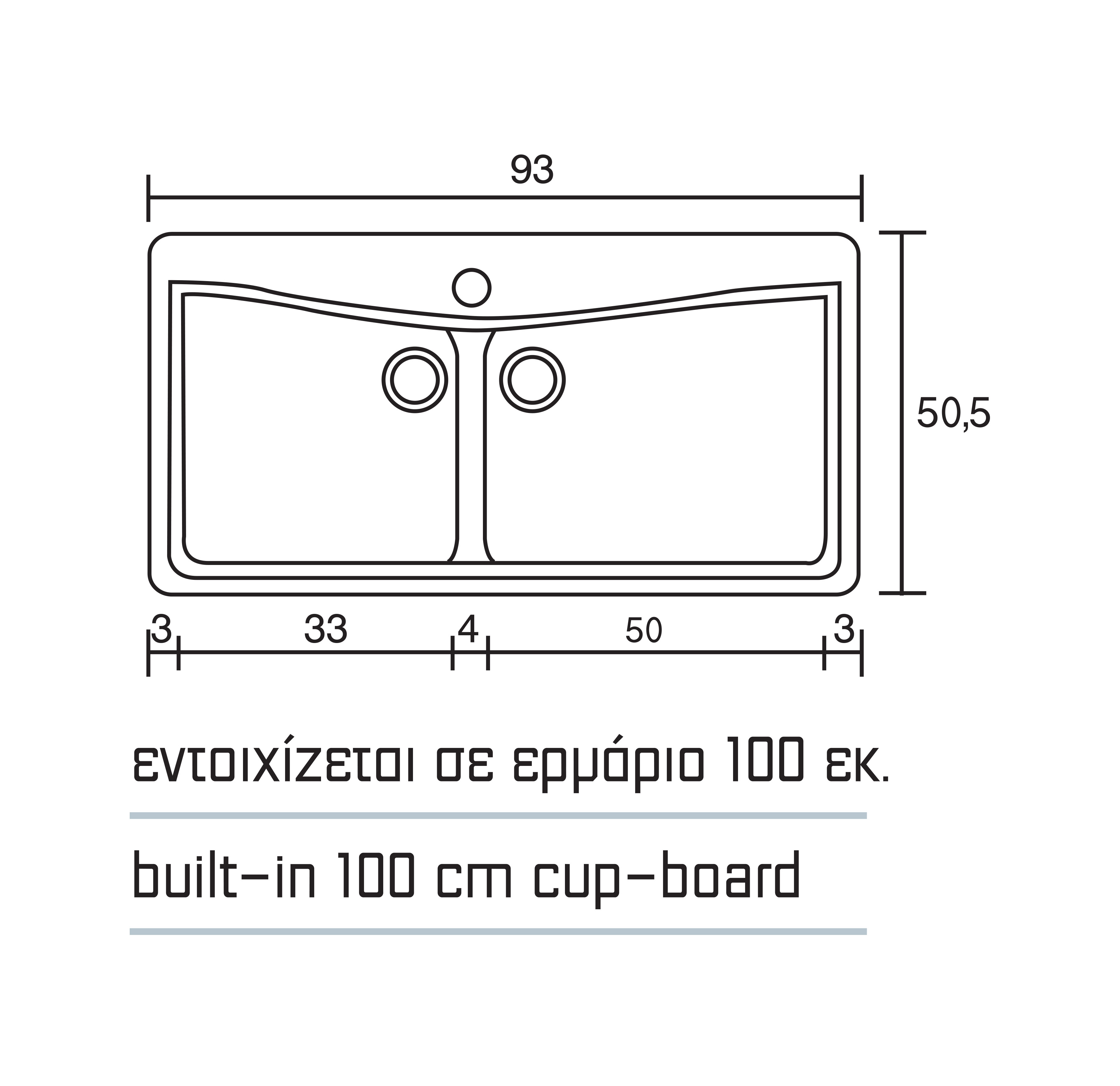 - Εντοιχίζεται σε ερμάριο 100εκ.