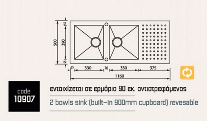 - Εντοιχίζεται σε ερμάριο 90εκ. αντιστρεφόμενος