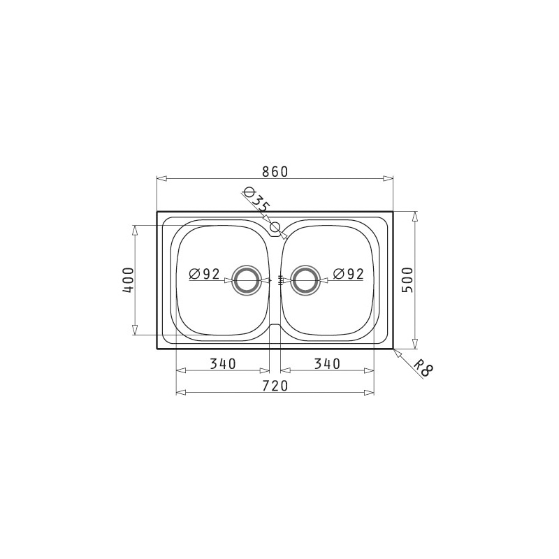 Aνοξείδωτος νεροχύτης με δύο γούρνες.
