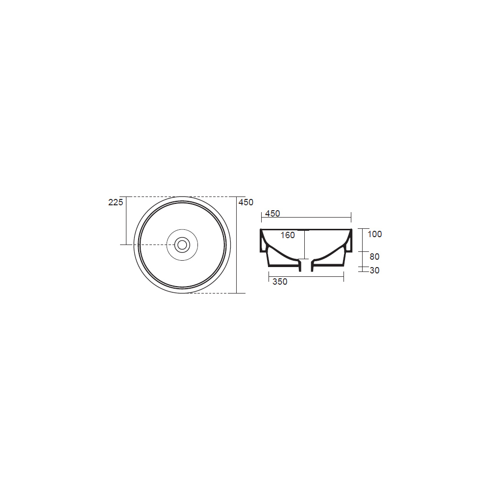 Νιπτήρας επικαθήμενος ημιένθετος Ø 45 / Υ 18εκ. KERASAN Ciotola Tondo 355701