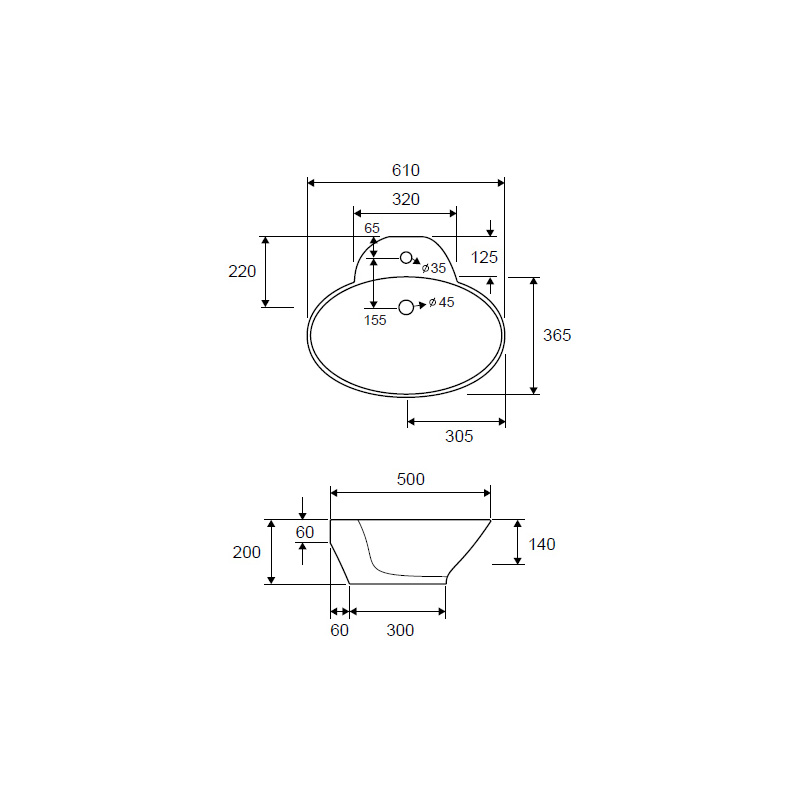 Νιπτήρας επιτραπέζιος Karag LT3072 61x50cm